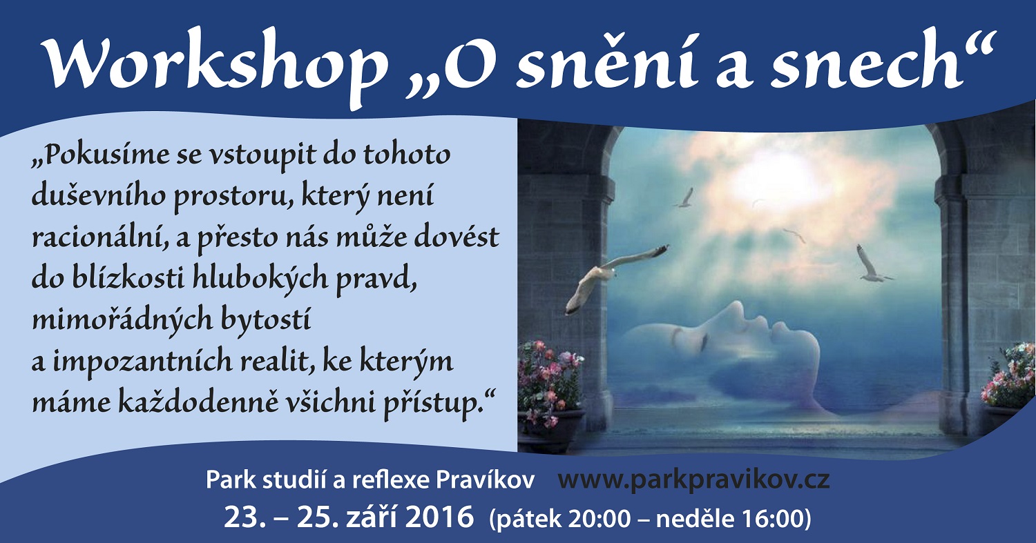 Budeme rozvíjet workshop o světě snů, a to tak, že trochu času věnujeme přezkoumání historického pozadí, ve kterém jsou k dispozici informace, které nám mohou sny přiblížit, ale budeme se také snažit vzít na vědomí a začlenit naše sny do našich vlastních životů – zapisovat si je, naučit se je třídit a interpretovat, snažit se jim porozumět i pomocí výměny zkušeností s ostatními. Pokusíme se našim snům umožnit, aby nás