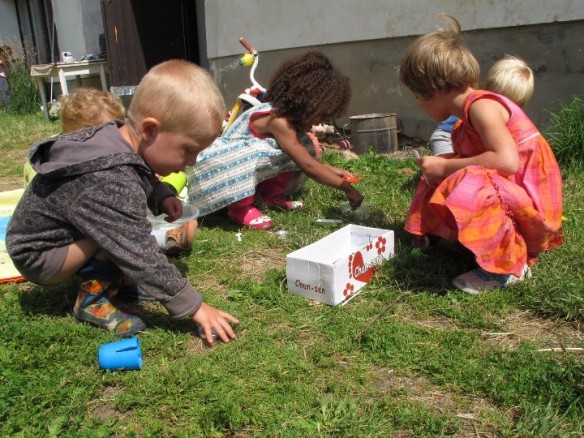 Program: výchova k nenásilí, poznáváme svět, artefiletika, povídánky, pohádky, divadlo, tělohrátky, hudba, obřad, oheň, hry, patláme matláme, zahradničíme, stavebničíme, atakdálíme…