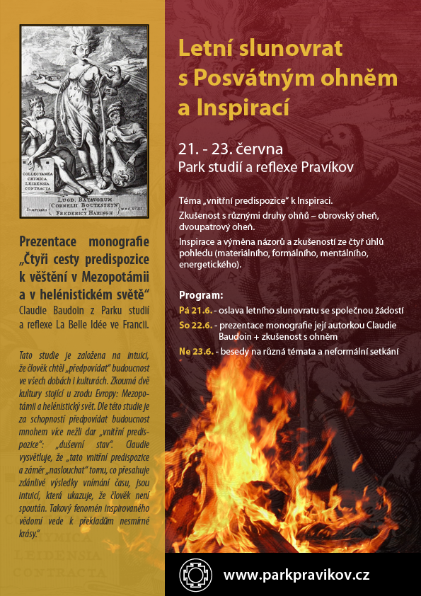 Srdečně vás zveme na víkend 21. – 23.6. v Parku Pravíkov, kdy proběhne oslava letního slunovratu a prezentace monografie na téma „Čtyři cesty predispozice k věštění v Mezopotámii a v helénistickém světě“.