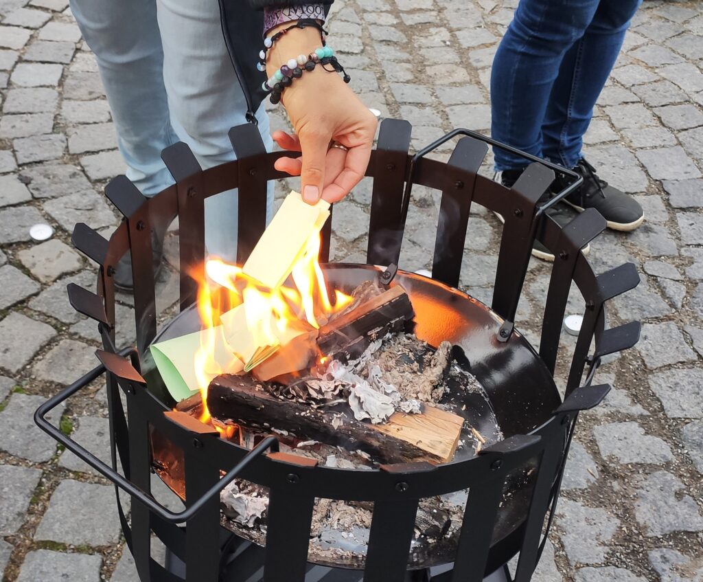 Děkujeme všem přítomným za pozitivní myšlenky a představy. Děkujeme za tento proud dobra a naděje. Děkujeme za odvahu představovat si lepší svět pro všechny – síla nenásilí se stává jeho přirozenou součástí. Stále více lidí se stává opěrným bodem a příkladem, že změnou, kterou hledáme ve světě, se musíme stát my sami…