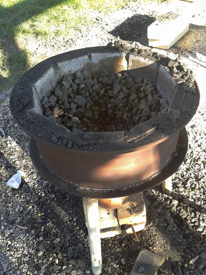 První krok k práci s bronzem. Tento víkend bychom rádi vytvořili základ pro pec (posvařování kovových částí). Víkend je otevřen všem.